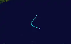 It was first noted as a tropical disturbance east of the International Dateline on August 26, and became a tropical storm soon after crossing in the dateline on the morning of August 29. A strong high pressure ridge offshore Japan led to no further development over the next 5 days, and the cyclone began to track south of west. Dropping down to a weak tropical depression late on September 1, conditions aloft finally improved and the cyclone strengthened into a typhoon on September 3 as it tracked west-northwest. Approaching Luzon late on September 5, Ellen intensified rapidly into a strong typhoon before the terrain began to weaken the cyclone. Its final landfall was at Macau on the morning of September 9 as a minor typhoon.[5]