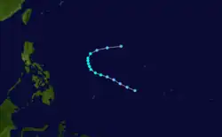 - ^ A super typhoon is an unofficial category used by the Joint Typhoon Warning Center (JTWC) for a typhoon with winds of at least 240 km/h (150 mph).[3]