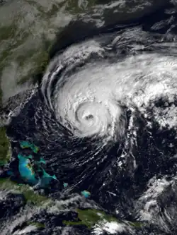 - ^ A hurricane is a tropical cyclone with maximum sustained winds of at least 74 miles per hour (119 km/h).