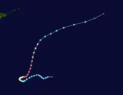 | Peak intensity | 185 km/h (115 mph) (10-min); 915 hPa (mbar) |