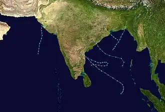 - ^ "Frequently Asked Questions: What is the annual frequency of Cyclones over the Indian Seas? What is its intra-annual variation?". India Meteorological Department. 2012. Archived from the original on May 21, 2015. Retrieved June 8, 2012.
