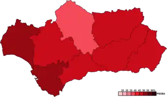 ![]() Constituency results map for the Parliament of Andalusia | |||||||||||||||||||||||||||||||||||||||||||||||||||||||||||||||||||||||||||||||||||||||||