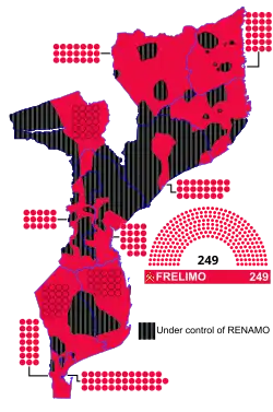 ![]() Seats by province. Territory under control of RENAMO in gray. | ||||||||||||||||