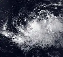 An area of disturbed weather developed a circulation on August 12 and was upgraded into Tropical Depression Twelve nearly 700 mi (1,100 km) south of the Baja California Peninsula. It drifted slowly to the northwest until it dissipated near 22 °N 110 °W on August 14. Peak maximum sustained winds were estimated at 35 mph (55 km/h).[2] Tropical Depression Seventeen formed on September 8, 30 km (20 mi) east of Socorro Island and dissipated on September 9 over cold water without becoming a tropical storm.[2]