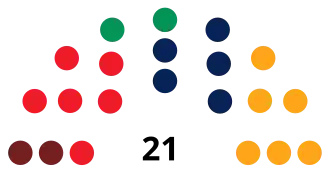 The following table lists party control in the Island Cabildos.[1] Gains for a party are displayed with the cell's background shaded in that party's colour.