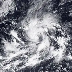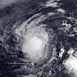 Tropical Depression Six developed on July 13 about 900 mi (1,400 km) southwest of Cabo San Lucas. The depression had same peak intensity as Three and had dissipated on July 17.[5] According to the Joint Typhoon Warning Center, on July 18 a tropical depression formed east of the International Date Line, and two days later it exited CPHC's area of responsibility;[42] however, this storm was not included into CPHC database.[3] As it entered into western Pacific, it strengthened as a tropical storm and received the name Wynne.[43] The final tropical cyclone developed at 1800 UTC November 24 around 1,000 mi (1,600 km) southwest of Baja California Sur. A very weak cyclone, the depression dissipated on November 25, ending the above-average season.[5]