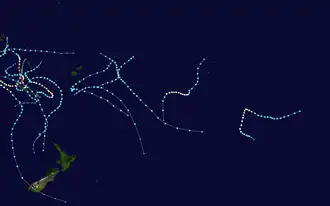 | Eseta | December 15 – 28 | Category 2 tropical cyclone | 100 km/h (65 mph) | 985 hPa (29.09 inHg) | Vanuatu, New Caledonia, Fiji, New Zealand | >$25,000 | None | [2] |