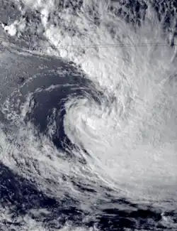 On January 1, Tropical Cyclone Delilah moved into the South Pacific basin from the Australian region, as a category 1 tropical cyclone on the Australian scale.[8] During that day as the system continued to intensify and move south-eastwards towards New Caledonia and the Loyalty Islands, the JTWC initiated advisories on the system and designated it as Tropical Cyclone 04P.[9][10] During January 2, as the system passed about 20–30 mi (30–50 km) of the northeastern coast of New Caledonia, the JTWC and the FMS reported that the system had peaked with sustained windspeeds of 110 km/h (70 mph).[8][10] During the next day Delilah started to weaken and transition into an extra tropical cyclone, as vertical wind shear over the system increased and the upper level westerlies intensified.[1][9] The system subsequently became an extra tropical cyclone during January 4, and started moving southwards towards New Zealand.[1] The system subsequently passed close to northern New Zealand during January 7, before it merged with a cold front during January 8.[1][9]