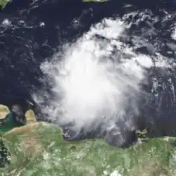 Drifting west-northwest over the Gulf of Mexico, the depression organized and reached tropical storm-strength early on September 2. Later that day, based on observations from aircraft reconnaissance, Debby was upgraded to a hurricane.[37] At peak intensity, the hurricane's center was just 30 mi (48 km) from the coast. With little change in intensity, Debby made landfall near Tuxpan, Veracruz, six hours later.[37] The storm brought high winds, inland flooding, and mudslides and caused 10 deaths.[38]
