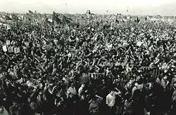Both sides called for massive rallies: on 22 September the No side started the March of Joy (Marcha de la alegría), which lasted 10 days and joined supporters from the northernmost and southernmost cities of Chile in Santiago.[10] These rallies were often stopped by the Carabineros or the secret police on claimed suspicion of possible attacks, or for no stated reason, and the demonstrators were attacked by armed pro-Yes supporters without the police taking any action. On 2 October the Yes campaign called for a huge rally in downtown Santiago. The rallies had different coverage by the news media, which struggled to show more Chileans standing for the Yes side than for the No, and were considered to be too close to the Yes campaign.