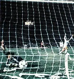 Some moments of the final, fltr: DeLeón scoring by penalty, Theiler and Vargas for the ball, and Ostolaza scoring the 2nd goal