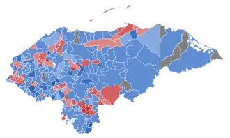 ![]() ![]() Callejas: 40–50% 50–60% 60–70% 70–80% Flores: 40–50% 50–60% 60–70% No votes recorded: | |||||||||||||||||