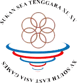 The logo for the Games features 6 elliptical rings alternately colored red and blue to form a shape that resembles a spinning top, or locally called gasing.[3]