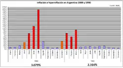 - ^ Roberto Cachanosky (February 8, 2023). "A 34 años del 6 de febrero de 1989, cuando una decisión del Banco Central dio paso a la hiperinflación" [34 years after February 6, 1989, when a decision by the Central Bank gave way to hyperinflation] (in Spanish). Infobae. Retrieved December 23, 2024.