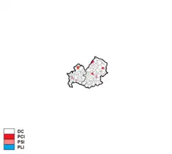 Christian Democracy was by far the largest party, gaining more than four times the share of vote of the Italian Communist Party, which came distantly second.