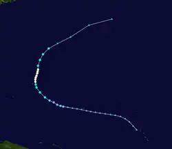 | Peak intensity | 140 km/h (85 mph) (10-min); 955 hPa (mbar) |
