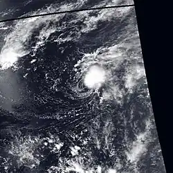 | Peak intensity | 55 km/h (35 mph) (10-min); 1000 hPa (mbar) |