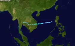 | Ira | October 1 – 3 | Tropical storm | 65 km/h (40 mph) | 996 hPa (29.41 inHg) | Vietnam, Cambodia, Thailand, Myanmar | None | 24 | |