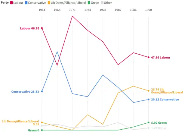 - ^ a b Minors, Michael; Grenham, Dennis. "London Borough Council Elections - 3rd May 1990 - Summary of voting statistics by ward - continued" (PDF). London Datastore. London Research Centre. p. 134. Retrieved 11 April 2024.
