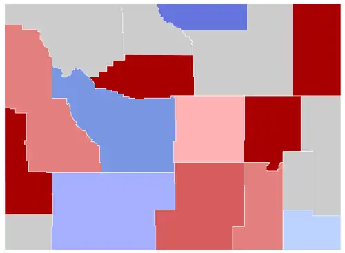 Winner by party  Best-performing candidate by county Republicans: 40–50% 50–60% 60–70% >90%Democrats: 30–40% 40–50% 50–60% 60–70%