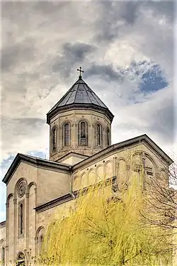 Around 07:30, Murtaz Shualashvili orders the first fire against Parliament[66] and Karkarashvili launches four rockets on the Parliament building,[53] inaugurating two weeks of violence. According to a New York Times report, the opposition refuses to accept any responsibility with the first attack.[67] Throughout 22 December, both sides use rockets, grenades, and automatic weapons to fight each other.[67] The Kashveti Church, which houses opposition soldiers, becomes a target of governmental forces.[68] The Gamsakhurdia household, nicknamed "Colchis Bell", catches fire,[53] but the family, under governmental protection during the coup, remains safe.[45]