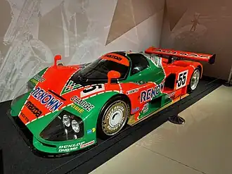 Mazda was the only Japanese company to contest the SWC, with a single car. They double-checked the regulations and confirmed that, indeed, FISA had let them retain the rotary-engine weight limit of only 830 kg. This loophole was not apparent at the start of the season, when the Mazda 787 had results of 6th, 7th and 11th. Meanwhile, Nigel Stroud at Mazdaspeed was developing the much improved Mazda 787B. This car had bigger wheels, reworked suspension and a slightly longer wheelbase. Extensive wind-tunnel testing improved the bodyshell with bigger ducts for new carbon brakes. Work on the quad-rotary engine improved its torque and fuel efficiency, while still maintaining its 710 bhp power output. The heaviest Mazda at scrutineering was still 150 kg lighter than the lightest Porsche in their class.[28][29]