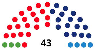 All 43 seats in the City Council of Barcelona 22 seats needed for a majority | ||||||||||||||||||||||||||||||||||||||||||||||||||||||||||||||||||||||||||||||||||