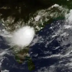 Early on August 22, reported that Depression BOB 04 had formed about 160 km (100 mi), to the southeast of Balasore, India.[4] As the depression moved towards northwest, it failed to intensify any further.[4] The depression made landfall in the Indian state of Odisha later that day and maintained its identity until it weakened into a low-pressure area early on August 26.[4] The depression's windspeeds were estimated to have peaked at 45 km/h (30 mph), whilst the lowest pressure recorded was 992 hPa.[4]