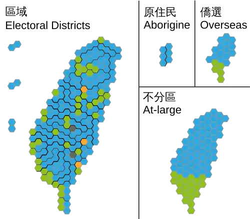 | Kuomintang | 6,053,366 | 69.11 | 254 | +186 | |