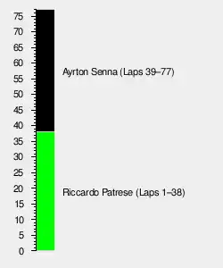At the start, Gerhard Berger passed Michael Schumacher, and then Mansell lost momentum and Senna passed him with Berger following his teammate through. The order was Patrese, Senna, Berger, Mansell, Schumacher, and Brundle. There was a collision on the first lap between Érik Comas, Johnny Herbert, Thierry Boutsen, and Gabriele Tarquini who all retired on the first lap (meaning both Ligiers of Comas and Boutsen retired on the first lap), before Eric van de Poele spun into retirement at the first corner on lap 3 as both Fondmetals retired after only two laps. Mansell passed Berger on lap 8 and set off after Senna. As hard as he tried, the combination of the small circuit and Senna's skills in defending meant that he could not pass.[12]