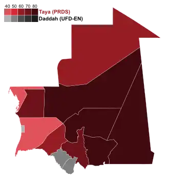 Presidential elections were held in Mauritania on 24 January 1992. They followed the constitutional referendum the previous year that resulted in the reintroduction of multi-party democracy, and were the first presidential elections to feature more than one candidate. The result was a victory for incumbent President Maaouya Ould Sid'Ahmed Taya of the Democratic and Social Republican Party, who defeated three other candidates with 62.9% of the vote.[1] Voter turnout was just 47.4%.[2]