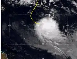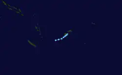 Early on December 26, the JTWC started to monitor a tropical disturbance that had developed about 575 km (355 mi) to the south-east of Nauru.[3] Over the next couple of days the disturbance gradually developed as it moved towards the south-southwest under the influence of a north-easterly flow.[4] Early on December 28, TCWC Nadi started to monitor the disturbance as a tropical depression.[5] Later that day, the JTWC classified the depression as Tropical Cyclone 05P, before TCWC Nadi reported that the system had intensified into a category 1 tropical cyclone on the Australian tropical cyclone intensity scale and named it Rewa.[5][6][7] Over the next few days, the system gradually intensified under the influence of favourable upper-level winds while it moved towards the south-southwest, passing through the Solomon Islands on December 29 and affecting the southeastern islands of Papua New Guinea.[4][8] As it moved through the Solomon Islands, Rewa moved out of the South Pacific basin and into the Australian region.[5]