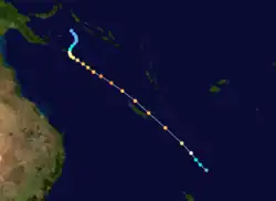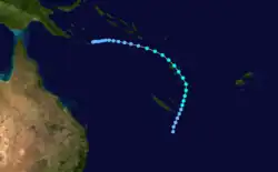 | Rewa | December 26, 1993 – January 23, 1994 | Category 3 severe tropical cyclone | 150 km/h (90 mph) | 950 hPa (28.05 inHg) | Australia, New Caledonia New Zealand, Papua New Guinea Solomon Islands, Vanuatu |
