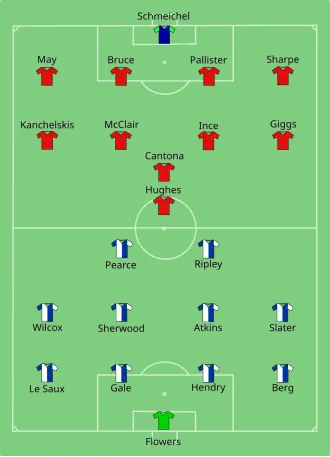 Meanwhile, Manchester United defender David May made his club debut just weeks after joining them from Blackburn. Denis Irwin and Roy Keane were absent after being given an extended break after playing for the Republic of Ireland in the 1994 FIFA World Cup.