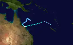 Twice transited Cape York Peninsula before making a final landfall along the southern coast of the Gulf of Carpentaria, in the Northern Territory.[4] Severe flooding triggered by Cyclone Ethel resulted in A$75 million (US$57 million).[5]
