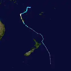 | Beti | March 21 – 28 | Category 4 severe tropical cyclone | 165 km/h (105 mph) | 935 hPa (27.61 inHg) | Australia, Vanuatu New Caledonia, New Zealand |