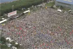The Okinawa Prefectural Assembly passed a resolution to protest against the actions of the U.S. military.[16] On October 21 the anti-base movement reached its apex, a rally was held in Ginowan City to protest the incident and the U.S. military bases.[17] About 85,000 residents participated in the rally,[18] including the Governor of Okinawa Masahide Ota. This was the largest protest in Okinawa since the treaty was signed in 1960.[19][20] The then governor of Okinawa Masahide Ota even refused to sign the documents required by the U.S. military base.[21]