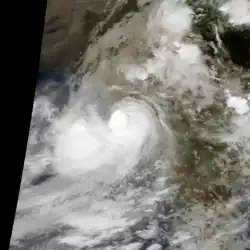While the previous storm was paralleling the east Indian coastline, another disturbance formed off the west coast on June 15, also associated with the monsoon. The new area of convection persisted,[3] developing a distinct circulation by the next day. Early on June 17, a depression developed about 365 km (227 mi) west of Mumbai.[1] At 18:00 UTC that day, the JTWC classified it as Tropical Cyclone 04A, after the wind field became more defined.[3] The system moved to the northeast within the influence of the monsoon, and quickly intensified due to an anticyclone aloft providing favorable conditions.[1][18] On June 18, the IMD upgraded the system to a cyclonic storm, and further to a severe cyclonic storm by 18:00 UTC that day. At 23:00 UTC, the storm made landfall on Gujarat near Diu, only the fourth cyclone since 1891 to strike the state in June. An hour later the IMD assessed peak 3-minute winds of 110 km/h (70 mph), based on the appearance of an eye feature.[1] Meanwhile, the JTWC assessed slightly stronger 1-minute winds of 120 km/h (75 mph), equivalent to a minimal hurricane.[3] The storm turned northward and slowly weakened, degenerating into a remnant low over Rajasthan on June 20 before being swept up by an approaching trough.[1]