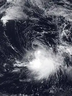 A system acquired enough convection and became organized enough to be considered a tropical depression on November 7.[36] Although the environment was initially favourable and the system was almost upgraded into a tropical storm as was forecast,[37] wind shear kept the cyclone weak. Its convection was eventually destroyed and advisories were ended on November 10.[38] Twelve-E dissipated on November 11 and no deaths or damages were reported.[39]