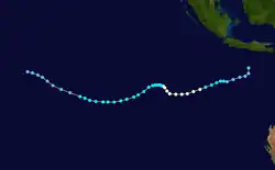 | Peak intensity | 155 km/h (100 mph) (10-min); 950 hPa (mbar) |