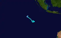 On 3 December, an area of concentrated convection developed from a monsoon trough over the Indian Ocean. The next day RSMC La Reunion issued one advisory on this system, labeling it "A3". Over the next few days the area drifted eastward into the Australian region and slowly organized. The warning center at Perth initiated bulletins on the tropical low on 7 December when the system was located 175 nm west-northwest of Cocos Island. The low remained essentially stationary for the next 48 hours while slowly weakening. Perth discontinued bulletins on the 8th, but continued to track the low for the next few days. The remnants of the low drifted eastward to a point about 150 nm north-northwest of Cocos. There is a significant possibility that this low is the same persistent one that developed into Tropical Cyclone Cathy.[2]
