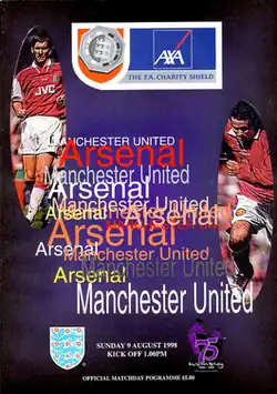 The 1998 Football Association Charity Shield (also known as The AXA FA Charity Shield for sponsorship reasons) was the 76th FA Charity Shield, an annual English football match organised by The Football Association and played between the winners of the previous season's Premier League and FA Cup competitions. It was contested on 9 August 1998 by Arsenal – who won a league and FA Cup double the previous season – and Manchester United – who finished as runners-up in the league. Watched by a crowd of 67,342 at Wembley Stadium in London, Arsenal won the match 3–0.