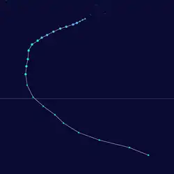 | Peak intensity | 140 km/h (85 mph) (10-min); 960 hPa (mbar) |