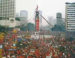 In the final week, the main parties held huge rallies in the capital: the PKB on 1 June, the National Mandate Party (PAN) on 2 June, the PDI-P on 3 June and Golkar on 4 June, at which its supporters were attacked.[18][19][20][21]