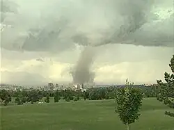 On August 11, 1999, a rare tornado struck Downtown Salt Lake City, Utah, United States. It was among the most notable tornadoes to hit west of the Great Plains in the 20th century and the second tornado to hit in Utah that resulted in a fatality (the other occurring in 1884).[3] This was the sixth significant tornado in Utah since June 1963,[4] and one of only two F2 tornadoes to have hit Salt Lake County since 1950 (the other occurring on February 9, 1965, in Magna).[5][6]