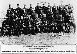 Details of the 19th Alberta Dragoons, the 21st Alberta Hussars and 23rd Alberta Rangers were placed on active service on 6 August 1914 for local protective duty.[1]