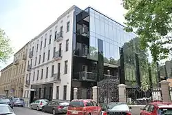 During the German occupation of the city from 1915 to 1918, it was called Schulz Zeile. In 1919, the name was changed to 1 Maja Avenue.[8] In the interwar period, a Jewish orphanage was located in the building at number 20, most likely managed by Chaim Rumkowski.[13] Several schools also had their headquarters on the avenue: at number 11, the private coeducational kindergarten of Ida Janowska; at number 12, Nusen Sendowski's cheder; at number 20, the private Jewish school "Orchot-No-am II"; at number 25, the Polish girls' Primary School No. 23, directed by Maria Kędzierska; at number 37, the private Jewish school "Jesodej Hatora" No. 4; at number 50, the Polish coeducational Primary School No. 2, directed by Ludwik Gidyński; at number 52, the male elementary school "Szkoła Polska No. 6" for children celebrating the Shabbat, directed by Szymza Sznapper; at number 87, Public Primary Schools No. 11 and No. 15.[14][15] A health center of the "Kropla Mleka" society, established in 1904 as the first section of the Warsaw Hygiene Society, operated at number 22.[16]