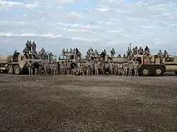 From the beginning of the Global War on Terrorism, the 1st Cavalry Division and its Brigades continued this tradition of service by deploying six times to Iraq in support of Operation Iraq Freedom and Operation New Dawn. These deployments would include engaging anti Iraqi and Al-Qaeda forces throughout the country, the first free elections in Iraq and providing training to Iraqi security forces and support to the people. The Division's four BCTs deployed to Iraq in 2010-2011 as Advise and Assist Brigades and their goal was to strengthen Iraqi sovereignty, stability, and self-reliance while supporting counter-terrorism operations. Operation New Dawn marked the Division's last deployment to Iraq. The 1st Cavalry Division and its brigades would deploy to Afghanistan four separate times in support of Operation Enduring Freedom. In 2011, the Division distinguished itself by exceptionally meritorious achievement from 19 May 2011 to 19 April 2012 in Regional Command – East, Afghanistan. The command created a unified team that was integrated in all operations and committed to working by, with and through Afghan institutions. The First Cavalry Division Headquarters deployed to Afghanistan to assume command of Regional Command-South on 7 July 2014 and later the Train, Advise, Assist Command-South. United States' and Coalition Forces, under the command of the 1st Cavalry Division in Southern Afghanistan, conducted train, advise, and assist missions so that the Afghan National Security Forces would be sustainable and capable of protecting their population and government into the future. With the 1st Cavalry Division Headquarters and elements of the 3d Cavalry Regiment deployed to Afghanistan, events required the Division's remaining units take on new missions around the world. Units deployed to areas where no 1st Cavalry Division Troopers have ever been or had not seen for decades. These areas included Europe, Korea, Africa and Cuba. First Team Troopers demonstrated their excellence while performing a wide variety of missions during multiple operations. The Army's finest Soldiers and best equipment, the hard-riding spirit of the United States Cavalry is alive and well in the 1st Cavalry Division. Our more than 26,000 Soldiers combine the spirit of the Cav's heritage with challenges facing an alert, combat-ready, armored division. The "First Team" remains ready to fight anywhere, anytime, and win.[2]
