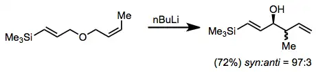 - ^ Priepke, H.; Bruckner, R.; Harms, K. (1990). "Asymmetric Induction in the Wittig-Still Rearrangement of Ethers Containing an Allylic Stereocenter – Diastereocontrol by Allylic Nitrogen". Chem. Ber. 123 (3): 555. doi:10.1002/cber.19901230323.