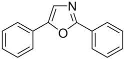 2,5-Diphenyloxazole (PPO) is an organic scintillator.[2] It is used as a wavelength shifter (also called a "primary shifter" or "fluor"), which means that it converts shorter wavelength light to longer wavelength light. Its output spectrum peaks at 385 nm, which is in the range of UV light.